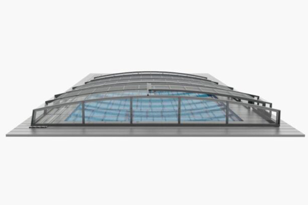 Diese flache Schwimmbadüberdachung fasziniert mit seiner modernen Form, Leichtigkeit und den neuesten technologischen Lösungen. Das minimalistische Design dieser Überdachung wird dort funktionieren, wo ein modernes Aussehen der Überdachung und eine schlichte, technologisch langlebige Struktur gesucht werden. Es ist ein ideales Angebot für Anhänger von Minimalismus, Technologie und ungezwungener Eleganz, die ein Produkt zu einem sehr guten Preis suchen.