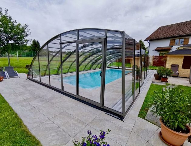 Hohe Poolüberdachung