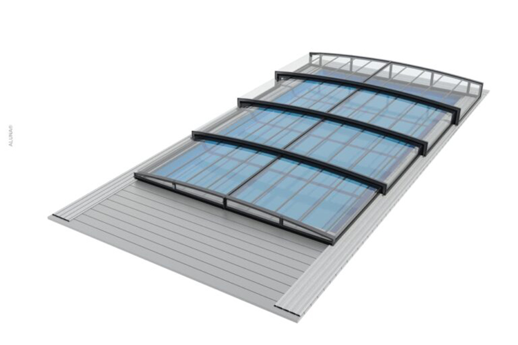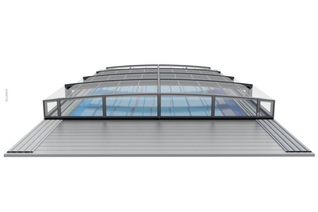Aluna® Exclusive Line ist eine ideale Lösung für Menschen, die den Blick auf den Garten nicht versperren möchten und sich nicht darum kümmern, das Schwimmbad bei geschlossenem Pooldach zu benutzen. Es ist ein ideales Angebot für Liebhaber von Luxus und ungezwungener Eleganz.