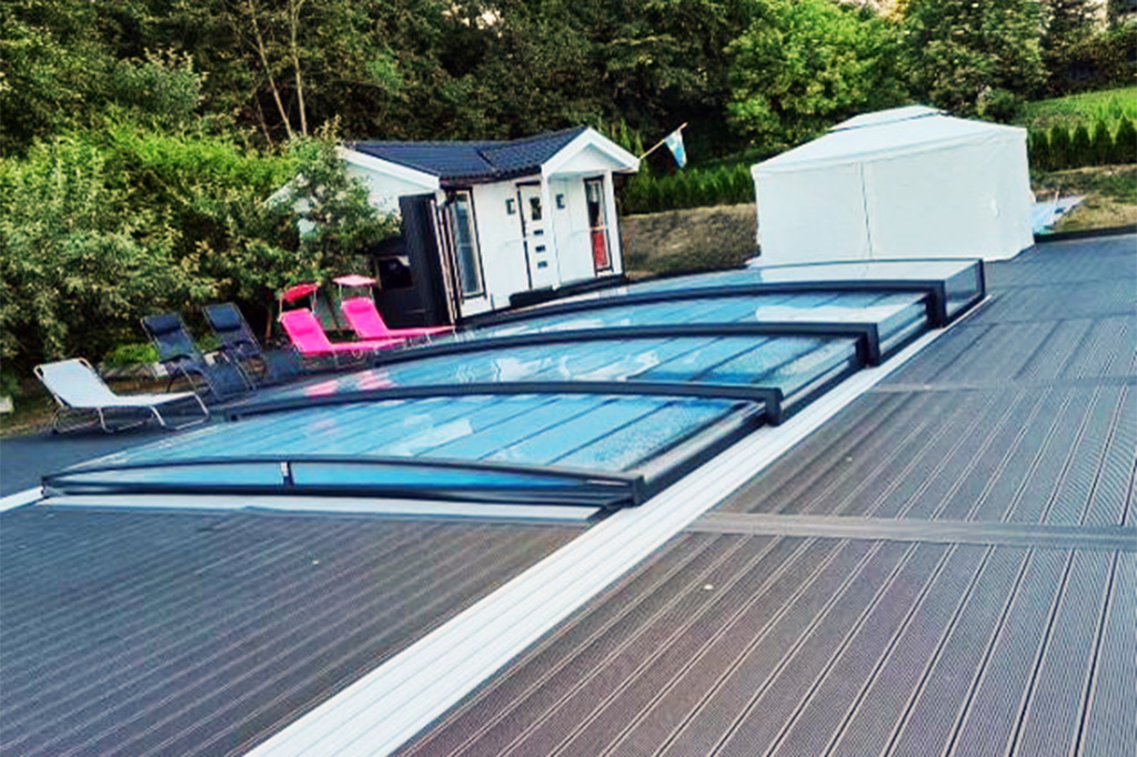 Flache Poolüberdachung